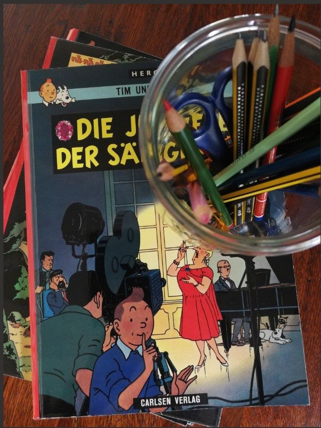 Für "freie Zeit" finden Sie Bücher, Zeitschriften, Stifte, Schere, Papier und Gesellschaftsspiele ( im alten Koffer neben der Bar )